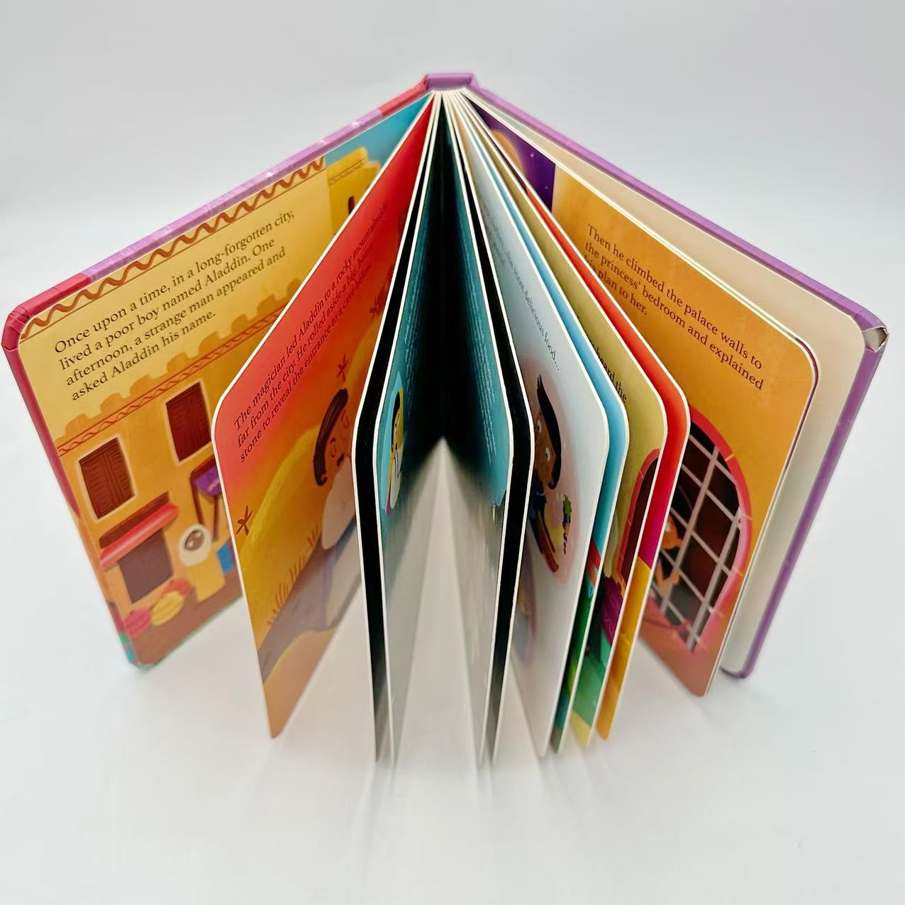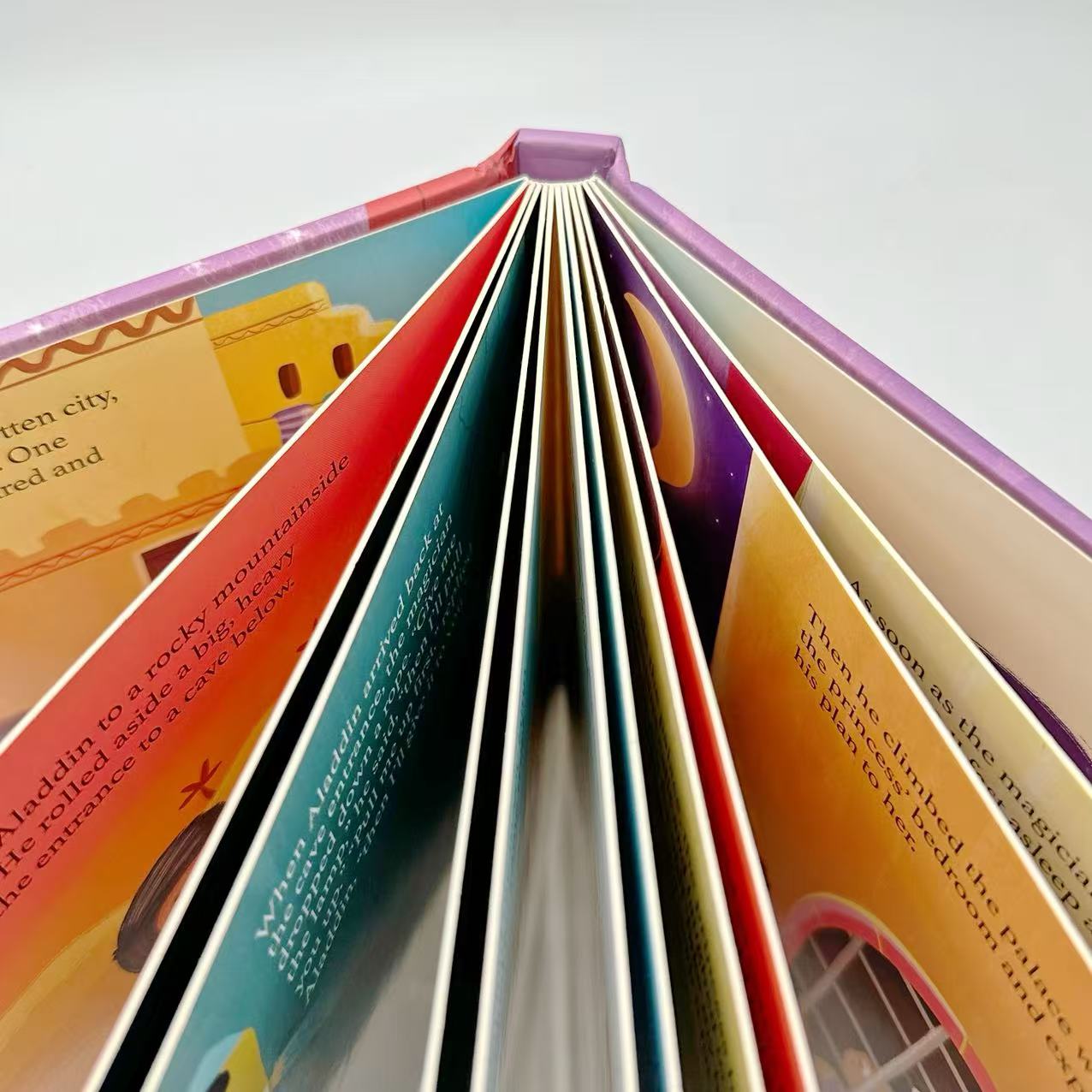 The production of a children’s hardcover book combines vibrant printing with durable construction to withstand frequent handling. First, the colorful illustrations and text are printed on high-quality coated paper using advanced offset presses for sharp, vivid images. The printed sheets are folded into signatures, collated, and securely sewn or glued into a strong book block. The hardcover is then produced, often with bright printed paper, lamination, or special finishes like embossing and foil stamping to appeal to young readers. Next, the book block is cased into the cover using a fully automated hardcover production line, ensuring perfect alignment and durability. Finally, the books are pressed, trimmed, and pass through rigorous quality inspections before packaging, resulting in a safe, long-lasting, and visually engaging children’s book.
