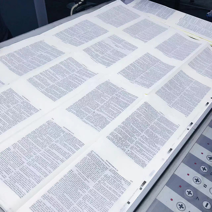 The production of a Bible involves a highly specialized and meticulous process to ensure durability, readability, and aesthetic quality. First, ultra-thin Bible paper—often as light as 28gsm—is carefully printed using high-precision web or sheet-fed presses with advanced color registration. After printing, the sheets are folded into signatures and gathered into book blocks. These blocks undergo processes such as sewing or adhesive binding to guarantee strength and longevity. Next, the covers—often leatherette or cloth with foil stamping—are prepared and cased onto the blocks using a hardcover production line. Finally, the Bibles are pressed, trimmed, and undergo strict quality inspection before being packaged for distribution. This detailed workflow ensures that each Bible meets the highest standards of craftsmanship and durability.